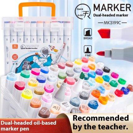 Truecolor MK3199C Dual-Ended Triangular Rod Quick-Drying Markers, Bucket Pack with Handles