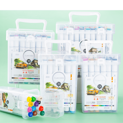 Truecolor MK3199C Dual-Ended Triangular Rod Quick-Drying Markers, Bucket Pack with Handles