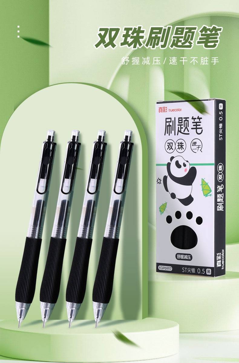 Truecolor GP7920 Neutral Brush Question Pen Special St Pointed Cone Head Black Pen Middle School Student Press Type Water Pen Core Ballpoint Pen Smooth Speed Dryi