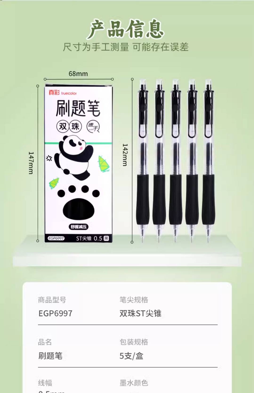 “Truecolor GP7997 Speed Dry Press Neutral Pen Double Bead Bullet Head 0.5mm Black” has been added to your cart. View cart