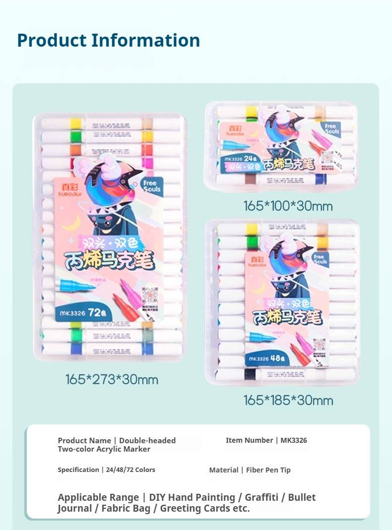 Truecolor Mk3326 Color Large Capacity Dual Head Dual Color Soft Head Acrylic Marker Pen